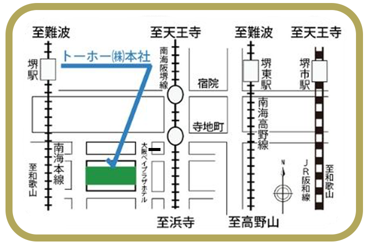 トーホー株式会社 〒590-0969 大阪府堺市堺区新在家町西1丁2番7号 TEL 072-233-3300 FAX 072-238-9900